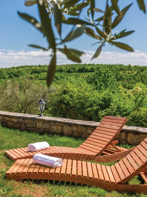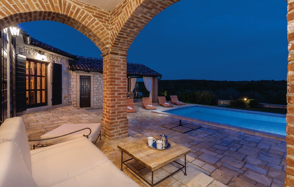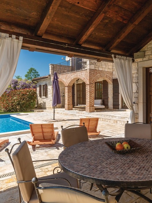Terasa sa vanjskim bazenom, roštiljem i saunom sa tušem.