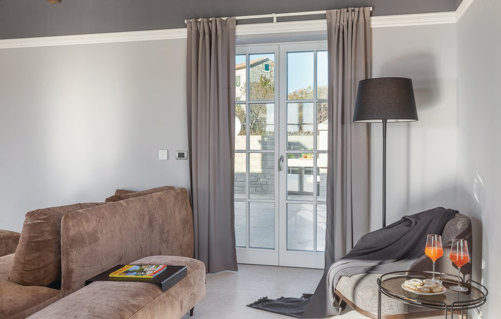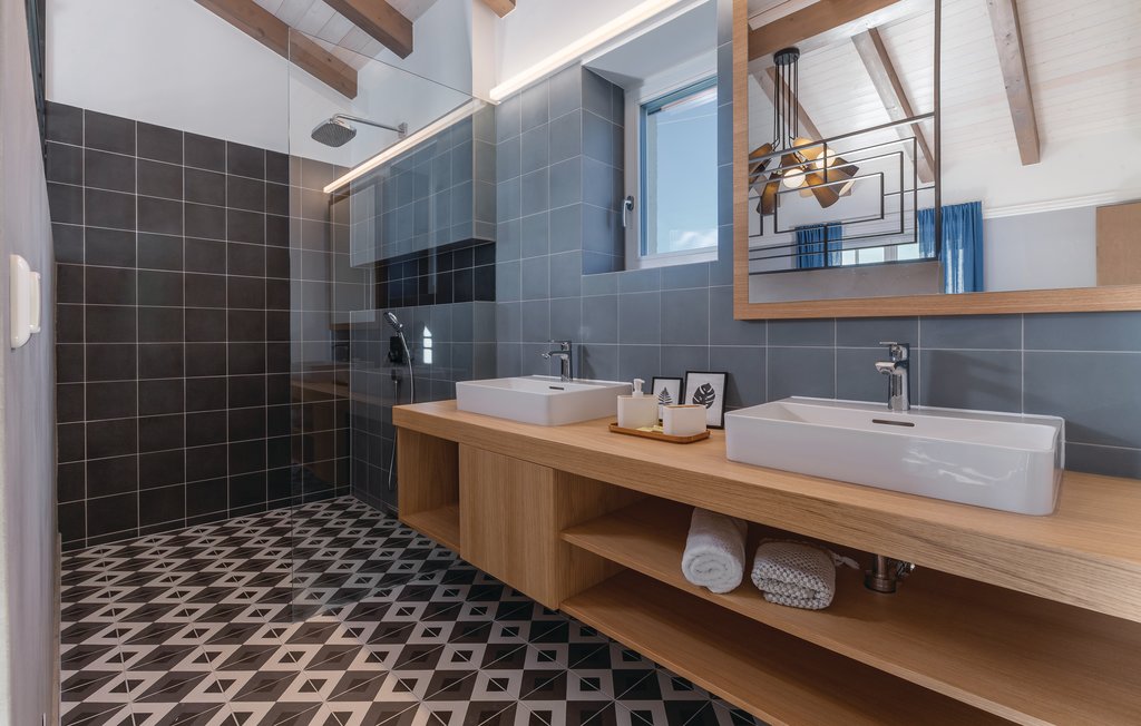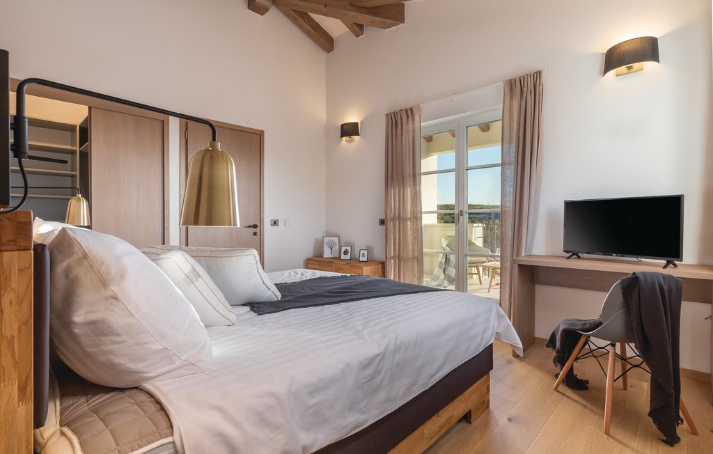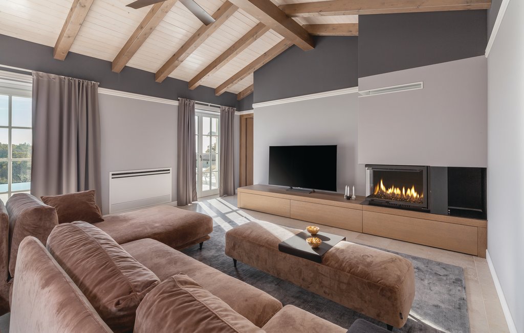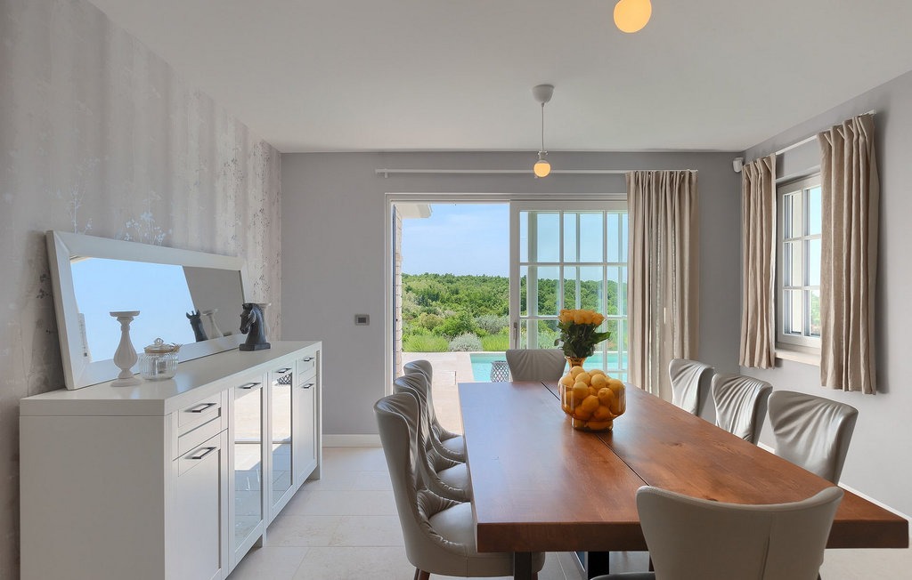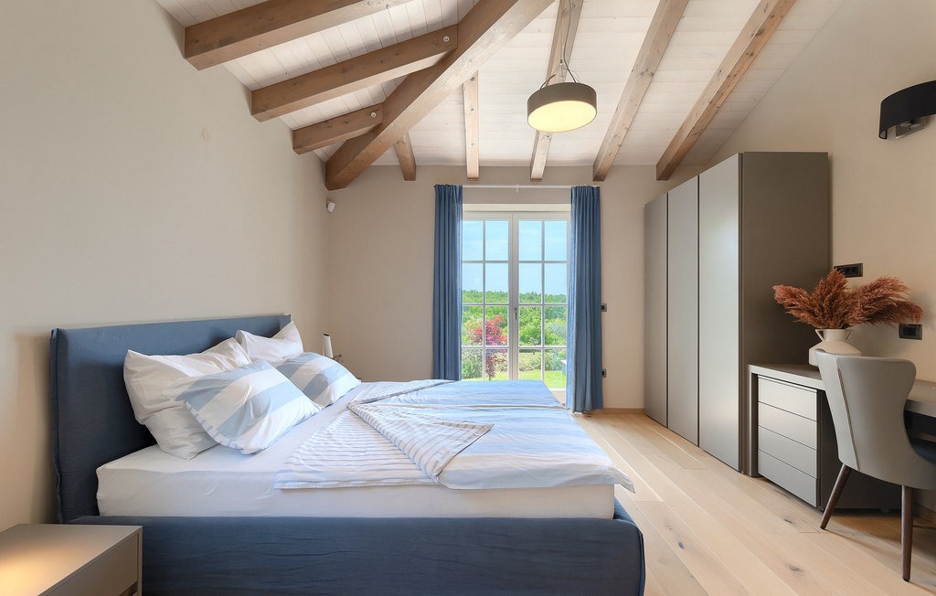 Izložene drvene grede na zidovima daju dašak rustikalnog uz moderni štih prekrasnog interijera vile Carinzia, tako ćete se osjećati kao da Vaš odmor iz snova u Istri započinje kako treba!
